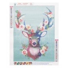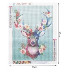 Set broderie cu diamante cerb, accesorii incluse, model, panza cu adeziv, diamante colorate, stimuleaza creativitatea, lipici uscat, 30x40 cm, 103g