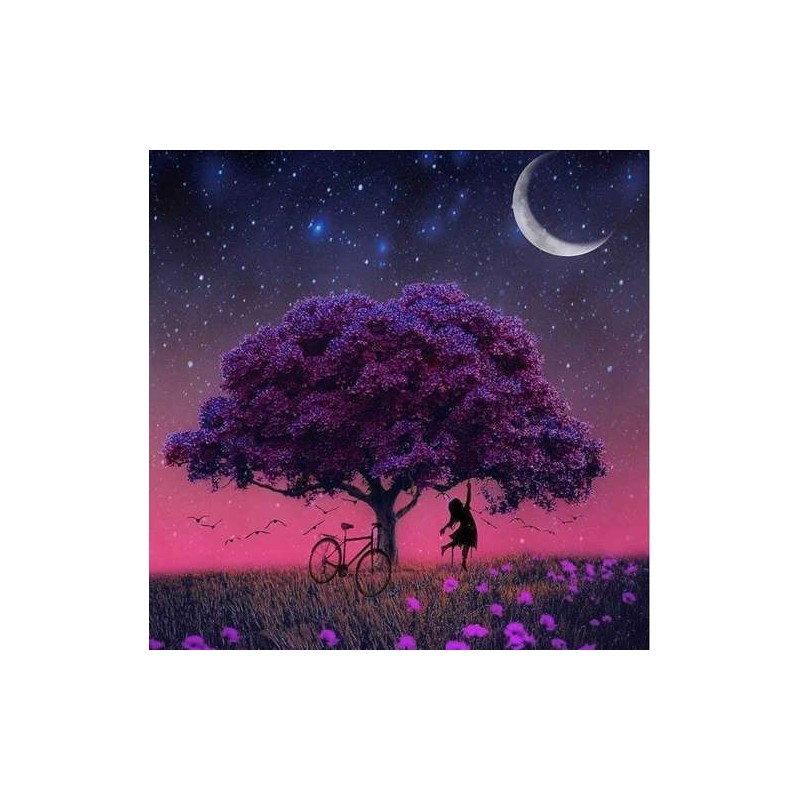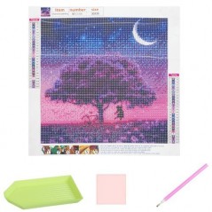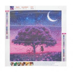 Set broderie cu diamante copac, accesorii incluse, model, panza cu adeziv, diamante colorate, lipici uscat, 30x30cm, 103g