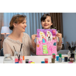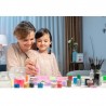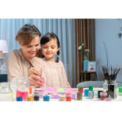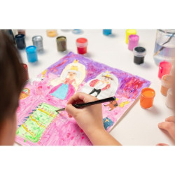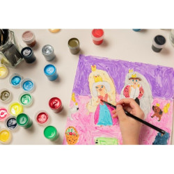 Setul contine 25 de culori in nuante stralucitoare, cu o putere mare de acoperire. Culorile sunt lavabile, astfel incat sa va puteti concentra atentia asupra artei, fara a va ingrijora de petele de pe haine. Acestea au o aderenta buna la diverse suprafete: carton hartie, panza, lemn, sticla, ceramica, piatra.