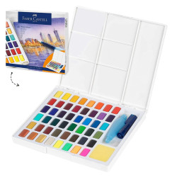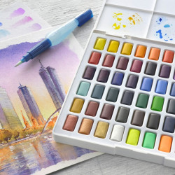 Acest set creativ contine 48 de acuarele, este destinat artistilor incepatori si pasionatilor de pictura, fiind dotat cu o pensula cu rezervor pentru apa si o paleta de amestecare detasabila. Sunt acuarele puternic pigmentate si permit efectuarea tuturor tehnicilor conventionale de acuarela.