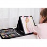 Zona de desen poate fi folosita de doi copii deodata, doar desfaceti valiza pe masa si asezati copiii unul vizavi de celalalt. Setul de arta pentru copii are o valiza practica cu incrustatii, care este echipata cu o inchidere cu 3 inchideri Velcro si un maner confortabil. Datorita acestui fapt, transportul valizei este confortabil si foarte simplu, iar continutul este in siguranta. Setul este perfect pentru a merge la scoala, gradinita, in aer liber sau la un prieten.