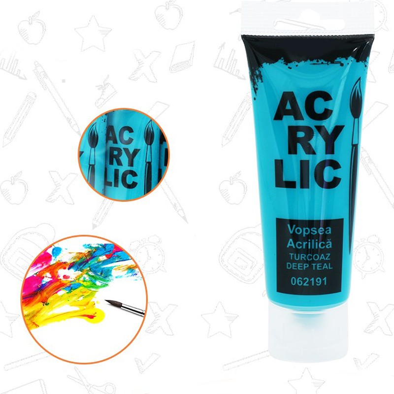Vopsea acrilica, 75 ml, vascozitate ridicata, turcoaz, pentru diverse suprafete: lemn, hartie, carton, sticla, panza, metal, etc