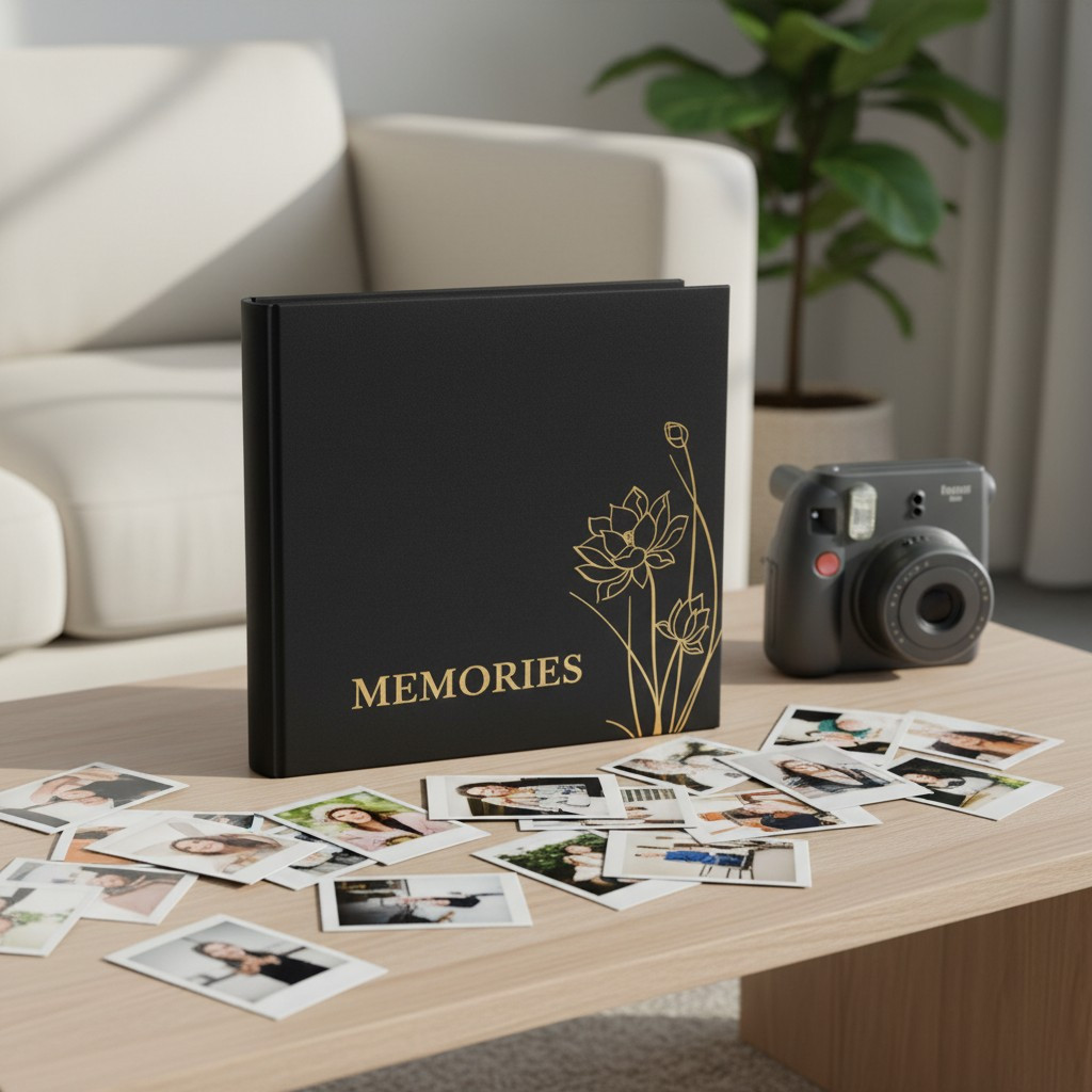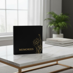 Coperta albumului foto este realizata cu un design elegant, avand un model floral negru care adauga o nota sofisticata. Interiorul albumului este conceput pentru a oferi protectie fotografiilor impotriva prafului si deteriorarii. Dimensiunile standard ale fotografiilor (10x15 cm) permit integrarea usoara a acestora in paginile albumului. Un astfel de album foto reprezinta o modalitate practica si estetica de conservare a imaginilor.