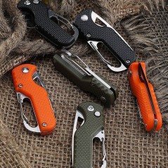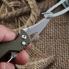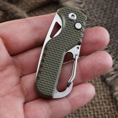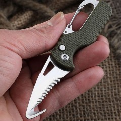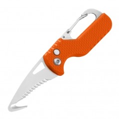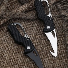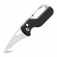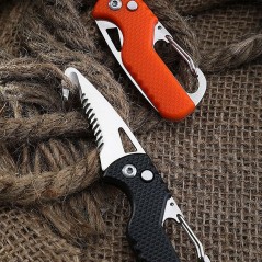 Acesta dispune de un carlig tip carabina care va ajuta sa il atasati la curea, ghiozdan sau la chei, si vine insotit de un sistem de protectie pentru lama.