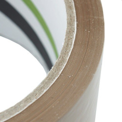 Poate fi aplicata pe materiale precum carton, hartie sau plastic. Banda are latimea de 48 mm iar lungimea unei role este de 66 metri. Setul contine 6 role de banda adeziva de culoare maro.
