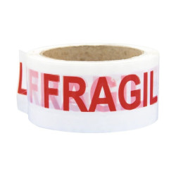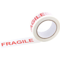 Aceasta banda adeziva este foarte utila atunci cand transportati produse fragile precum sticle, borcane, farfurii, pahare, etc. Banda are imprimat textul “Fragile” care va atrage atentia persoanelor care transporta marfa, fiind mult mai atenti la manevrarea acesteia.