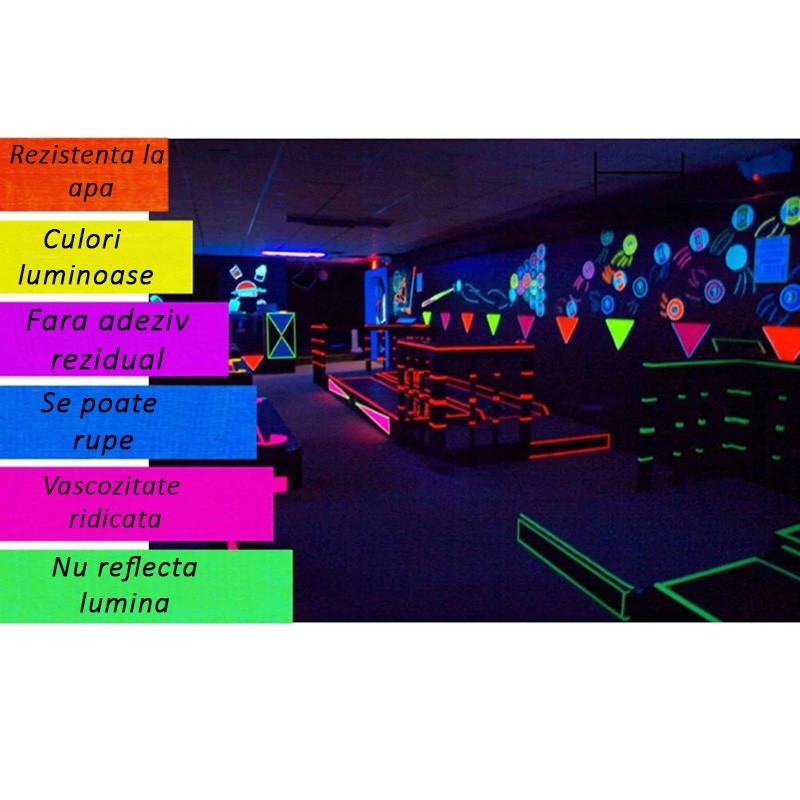Banda adeziva neon, rola 25m, textil, latime 2.5 cm, reutilizabila, impermeabila, marcaje, decoratiuni, orice suprafata uscata