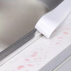 Evitati petele de apa si murdaria din spatele marginilor chiuvetei, cazii sau dusului cu aceasta autoadeziva confectionata din PVC. Datorita stratului flexibil, adera si la suprafetele usor neuniforme.
