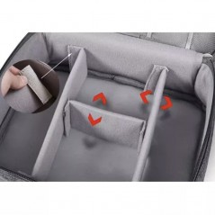 Acesta are mai multe compartimente si buzunare care va permit sa depozitati separat diferite tipuri de cabluri, incarcatoare, casti, etc. Buzunarele din partea principala a carcasei sunt mobile, iar cele de pe clapa au plasa si benzi elastice pentru o organizare mai usoara.