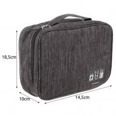 Organizator cabluri, 9 compartimente, impermeabil, inchidere cu fermoar, carcasa cu maner, dimensiune 25 x 20 x 10 cm, gri