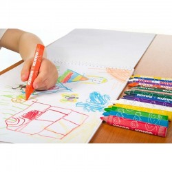 Setul contine 12 creioane cerate super moi si netede in culori pigmentate pentru diferite tehnici. Acestea au o forma triunghiulara si sunt confortabile in timpul utilizarii. Creioanele cerate sunt ideale pentru gradinita si scoala.