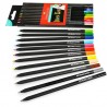 Acest set contine 12 creioane colorate special concepute pentru desene si schite pe o hartie inchisa la culoare sau hartie neagra. Acestea au o mina moale datorita careia este usor de obtinut efectele dorite. Creioanele au o forma triunghiulara ergonomica, iar pentru o utilizare indelungata si prevenirea ruperii minei, acestea au fost realizate cu o tehnologie speciala de lipire a minei de corpul de lemn care previne astfel deteriorarea acesteia (SV).