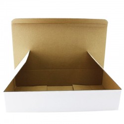 Cutie din carton alb cu capac 370x230x230 mm, microrondul E 360 gr/mp, tip FEFCO 0215