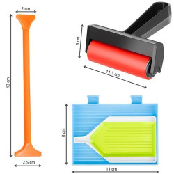 Trusa de broderie cu diamante reprezinta un accesoriu extrem de practic, continand printre altele o rola pentru presarea diamantelor care ajuta la lipirea si nivelarea suparafetei acoperite cu acestea.