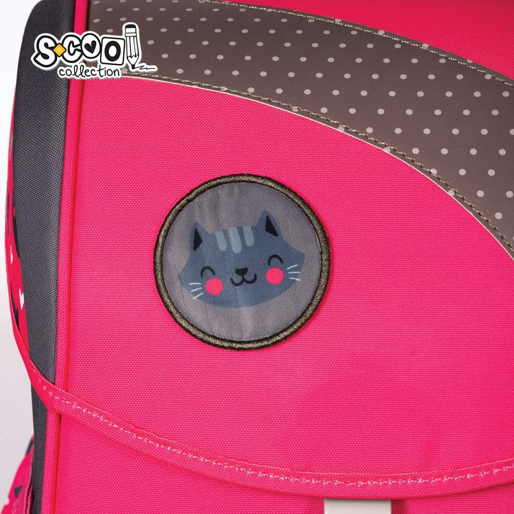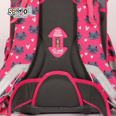 Ghiozdanul anatomic I AM SO PURRFECT are carcasa tare, fiind potrivit pentru fete aflate in clasele primare. Acesta este conceput cu un sistem integrat de reglare a bretelor in functie de inaltimea copilului si de distribuire a greutatii uniform.