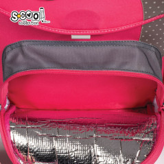 - Buzunarul frontal destinat depozitarii gustarilor sau a altor alimente este captusit cu folie termoizolanta, care asigura prospetimea mancarii pentru o perioada lunga de timp. Inchiderea buzunarului frontal se realizeaza cu fermoar puternic din plastic, ce asigura o manevrare uniforma.