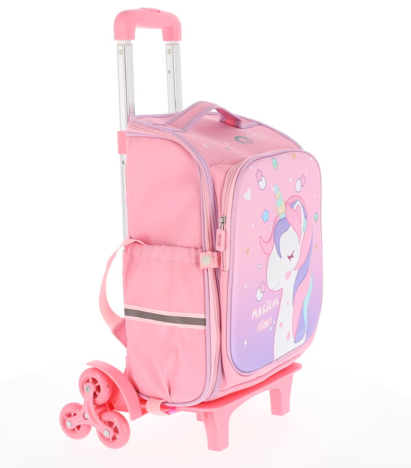 Ghiozdan scolar pentru clasa pregatitoare cu 2 fermoare, troller detasabil cu 6 roti, 18L, roz29300 leiTVA inclus