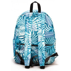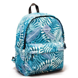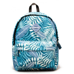 Ghiozdan Tropical Leaves, 19 litri, 1 compartiment, spatiu laptop, 4 buzunare, poliester, 39x31x16.5 cm, albastru