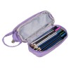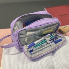 Penarul dispune de 3 compartimente: primul compartiment este echipat cu suporturi flexibile, perfecte pentru depozitarea pixurilor, creioanelor si a altor instrumente de scris. De asemenea, exista buzunare din plasa, suplimentare, pentru depozitarea obiectelor de dimensiuni mici (radiere, ascutitoare). Al 2 compartiment va permite depozitoarea unui set complet de creioane, poxuri sau markere, pe cand al 3 compartiment, situat la baza penarului, este incapator si nu contine diviziuni.