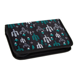 Penar scolar pentru fete/baieti, neechipat, imprimeu Cactus, 1 compartiment cu benzi elastice si buzunare PVC, poliester