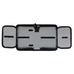 Realizat din poliester buretat si cartonat, penarul protejeaza instrumentele de scris depozitate de socurile externe. Penarul inchis are dimensiunea de 20.5x13.5x4 cm, iar cand este deschis are dimensiunea: cu extensii pliate 30x20.5x2 cm, cu extensii nepliate 51x20.5x2 cm.