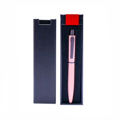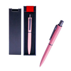 Pix retractabil cu corp metalic, cutie cadou, mina albastra, roz