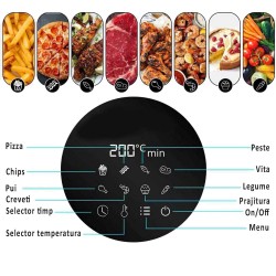 Friteuza cu aer cald este aparatul cu ajutorul caruia va puteti bucura de preparatele prajite preferate intr-o alternativa mult mai sanatoasa si rapida. Acum mancarea prajita va fi mult mai savuroasa si cu mai putine grasimi in doar 4 pasi simpli: trebuie sa puneti ingredientele in cuva aparatului, setati timpul si temperatura, panoul de control va afisa programul prestabilit de 30 minute si 80 grade C iar apoi deschideti dupa ce se opreste automat si savurati mancarea crocanta cu mai putine calorii.