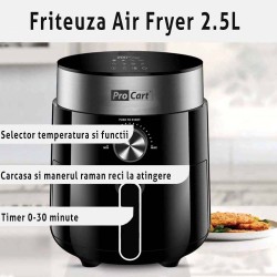 Friteuza cu aer cald AirFryer 1200 W, capacitate 2.5 L, display digital LED, ProCart, RESIGILAT15268 lei