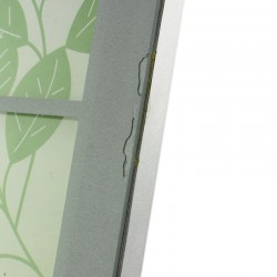 In interiorul acestei rame foto aveti posibilitatea de a insera 6 fotografii, 3 fotografii 6.5x5 cm si 3 fotografii 5x4 cm. Aceasta este confectionata din metal, culoare argintiu.