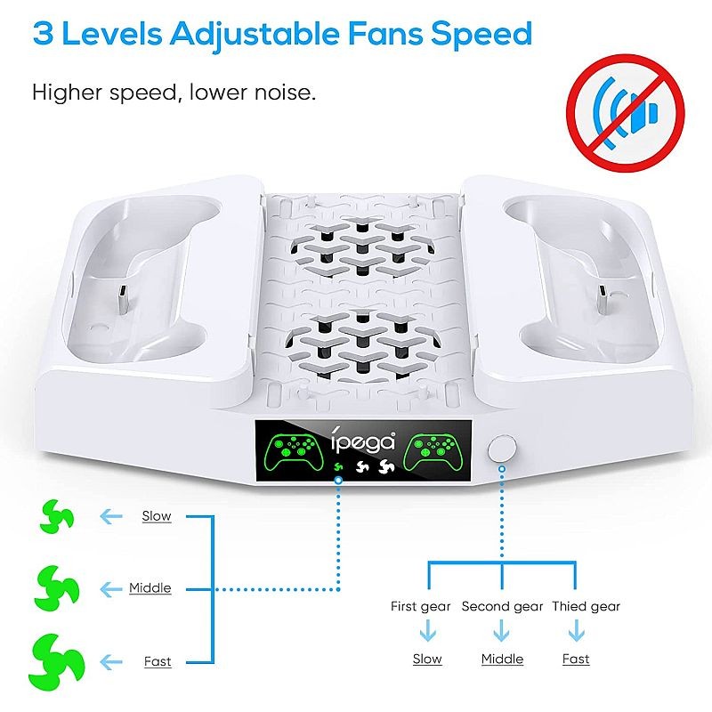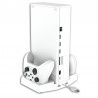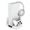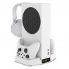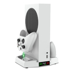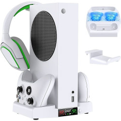 Suportul multifunctional 4 in 1 este special conceput pentru consola Xbox Series S si controlerul original pentru Xbox Series S/X. Suportul de racire este construit cu 2 ventilatoare de racire cu putere pe 3 niveluri, porturi de incarcare pentru controler dublu, 1 suport pentru casti si 2 porturi USB.