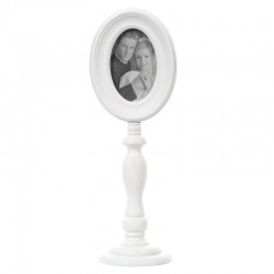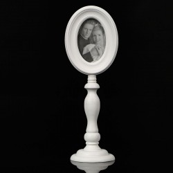 Rama foto forma ovala, picior inalt masiv, lemn alb, design vintage, dimensiuni 21x16x44cm, 1 fotografie