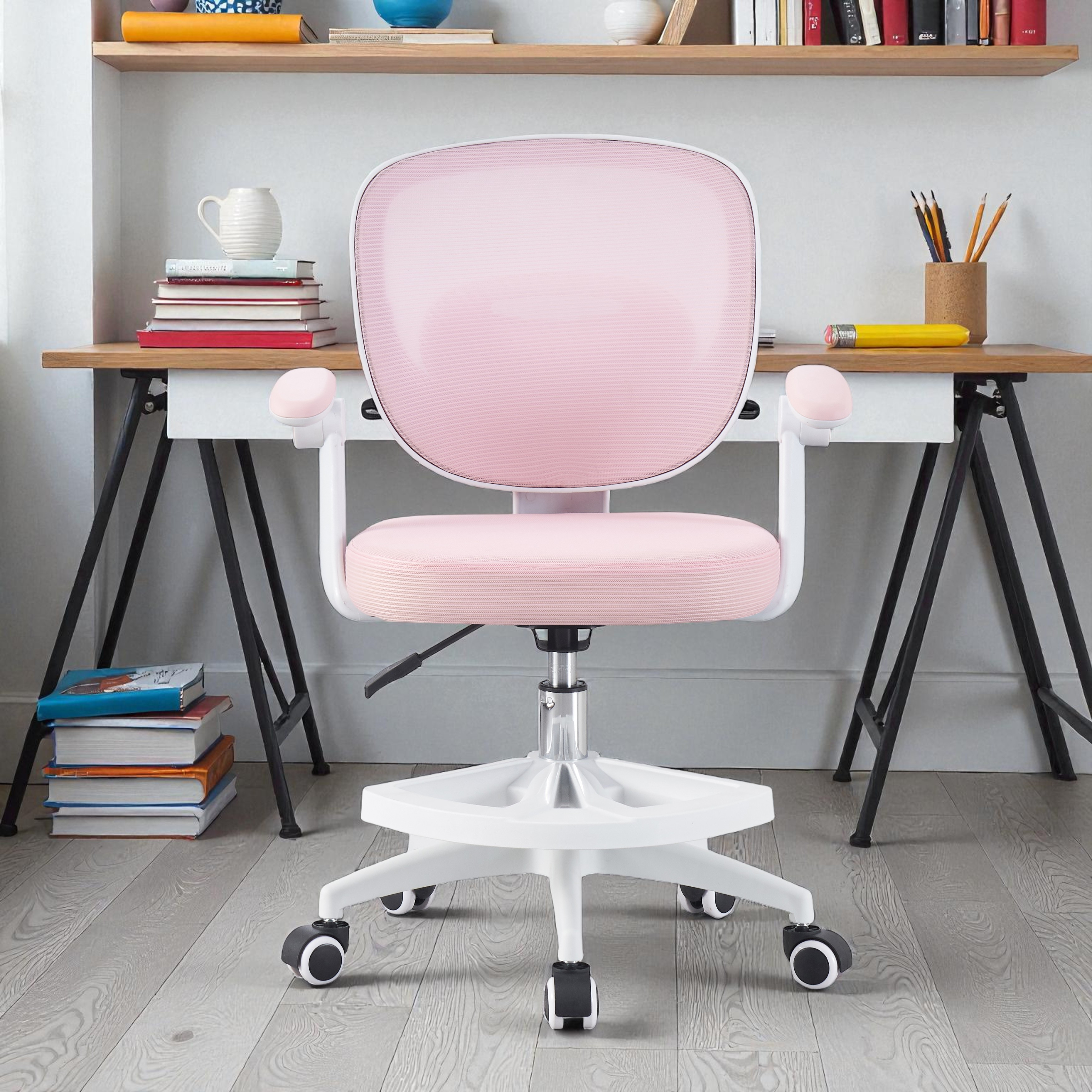 Scaun ergonomic de birou, inaltime reglabila 78-90 cm, suport picioare, mesh roz