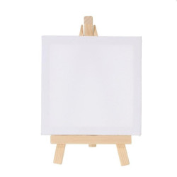 Dimensiunea panzei este de 10x10 cm, iar dimensiunea sevaletului este de 16 x 9 cm. Este confectionat din lemn si este prevazut cu panza de culoare alba.