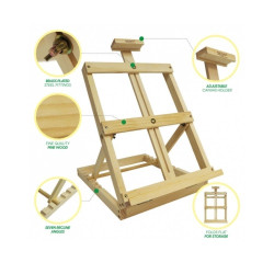 Acest model de sevalet este potrivit pentru toti artistii, atat pentru cei profesionisti cat si pentru incepatori. Se poate folosi atat acasa cat si in atelier, avand 7 trepte de reglare a inclinarii. Ofera o fixare stabila pe masa de lucru si o pliere compacta.