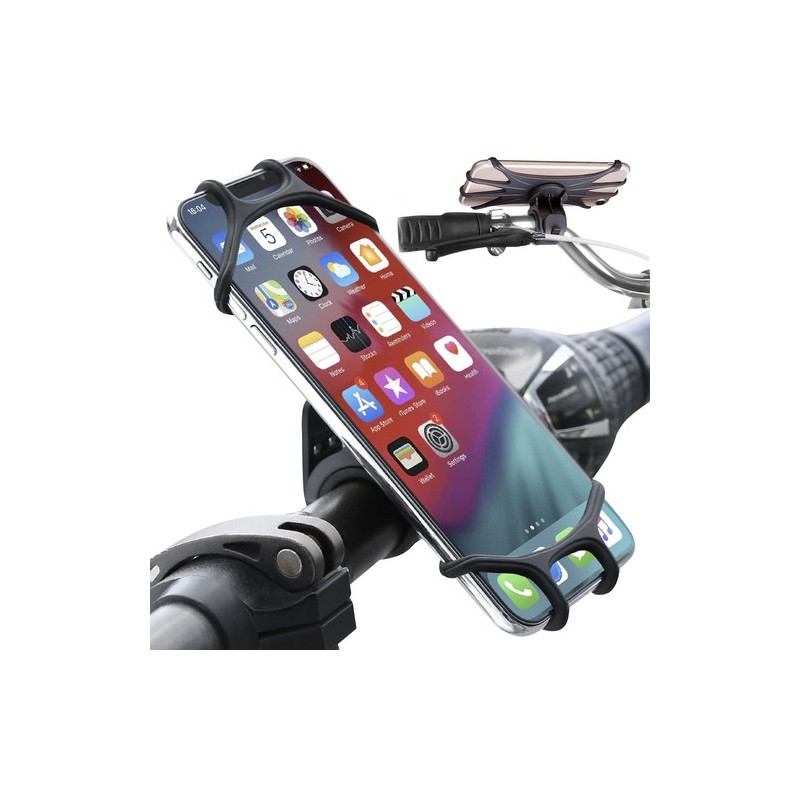 Suport telefon bicicleta, material antiaderent, unghi reglabil, universal, silicon, negru