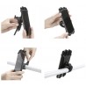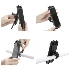 Suportul are un maner la indemana si practic pentru montarea pe volan. Cureaua de cauciuc si inchiderea cu carlig sunt cel mai rapid asamblare posibil. Cauciucul se intinde, astfel incat sa il puteti ajusta la diametrul fiecarui tub de ghidon. Manerul se roteste la 360 grade, astfel incat sa il puteti indrepta in orice directie de care aveti nevoie.