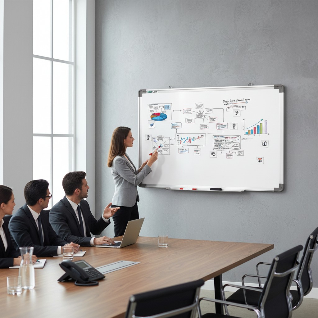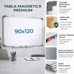 Tabla magnetica Premium alba 90x120 cm, rama de aluminiu, fixare perete, suport markere