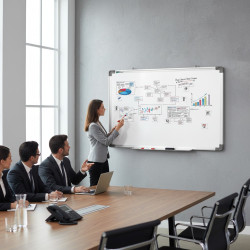 Suprafata de scriere de culoare alba, lacuita, realizata din otel. Este un accesoriu potrivit pentru diverse prezentari, schite si poate fi montata in sali de sedinte, sali de conferinte sau sali de clasa.