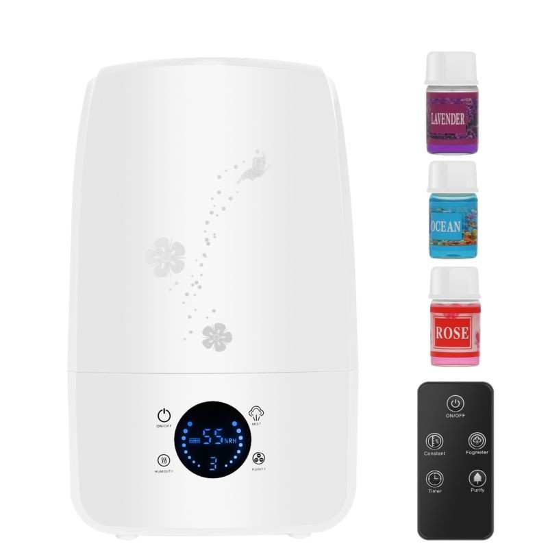 Umidificator de aer cu ionizator, aromaterapie, panou tactil, telecomanda, utilizare silentioasa, 3 uleiuri esentiale incluse, design modern